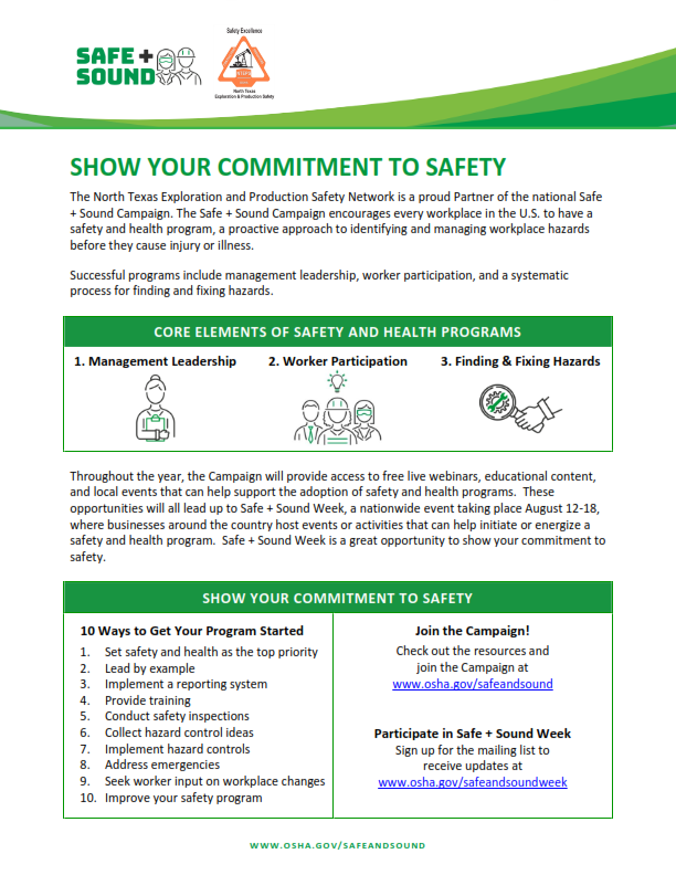 Last year, Safe + Sound Week was a success by all measures. Hundreds of businesses across the country participated to showcase elements of their safety and health programs during the week, or took a step in the right direction by starting to build their safety and health program. We are pleased to announce that this year Safe + Sound Week will take place August 10-16. Leading up to Safe + Sound Week, there will be opportunities to learn more about safety and health programs and get exclusive content from Safe + Sound Organizers.